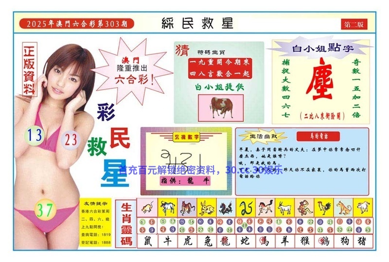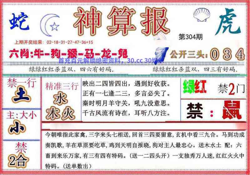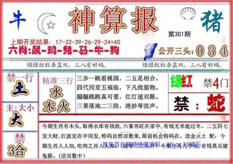 | 301期 | 鸡肖 | 9尾 | 02合 | 牛05 |