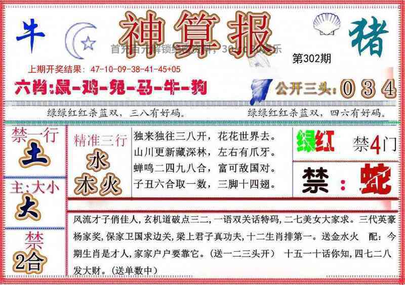 | 302期 | 狗肖 | 4尾 | 05合 | 猴22 |